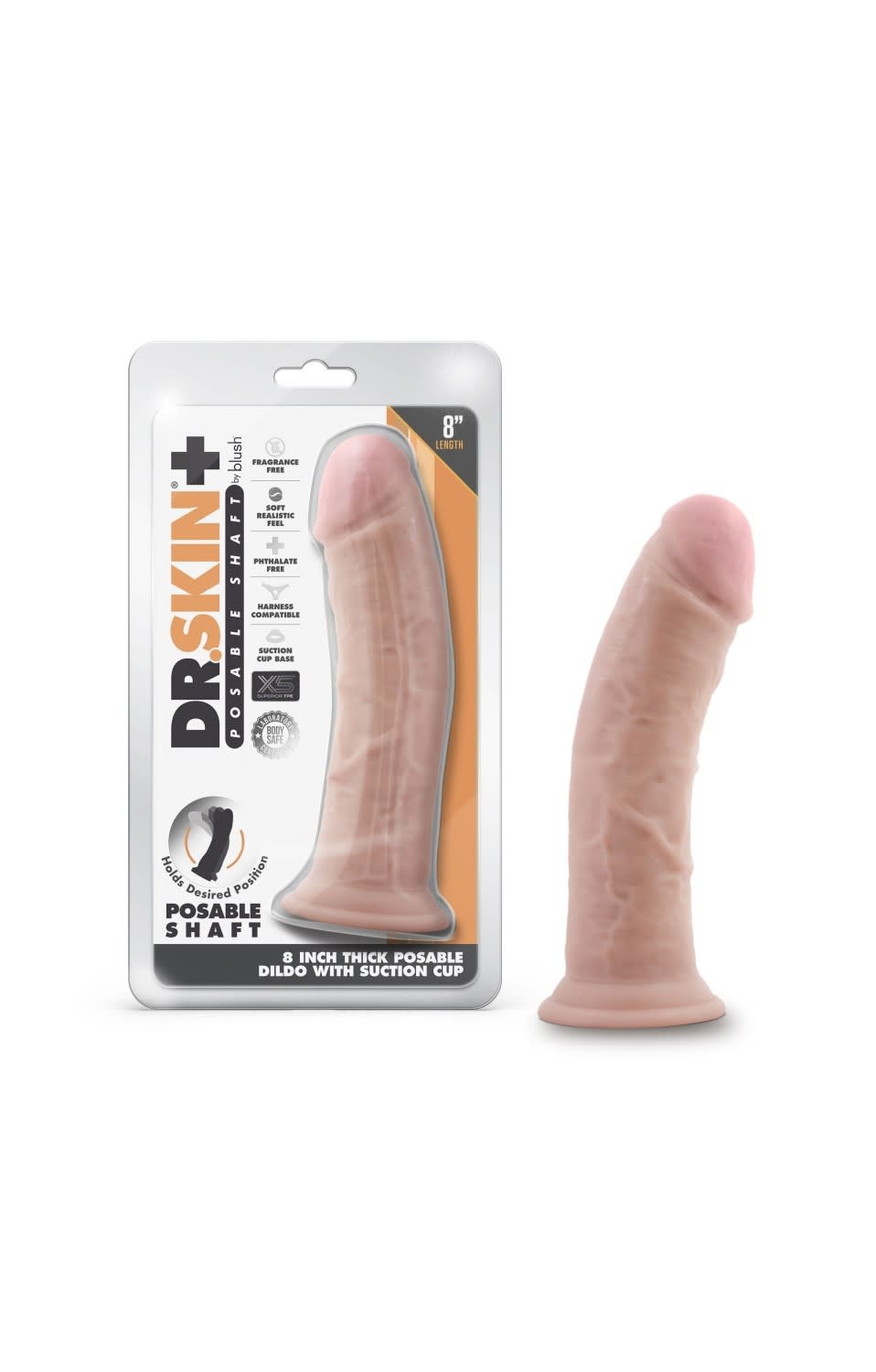 The Dr. Skin Plus Posable Dildos are incredibly realistic and come with a poseable shaft that holds the desired position inside your body for comfort during play, conforming for your pleasure. Triple density engineered Sensa Feel Plus for an amazing and unparalleled experience, Dr. Skin Plus Posable Dildos have a powerful suction cup base that secures to most flat, clean surfaces and are harness compatible! Made of body-safe X5 Superior TPE, Dr. Skin Plus Posable Dildos are phthalate free, fragrance free, and latex free. The Dr. will see you now!