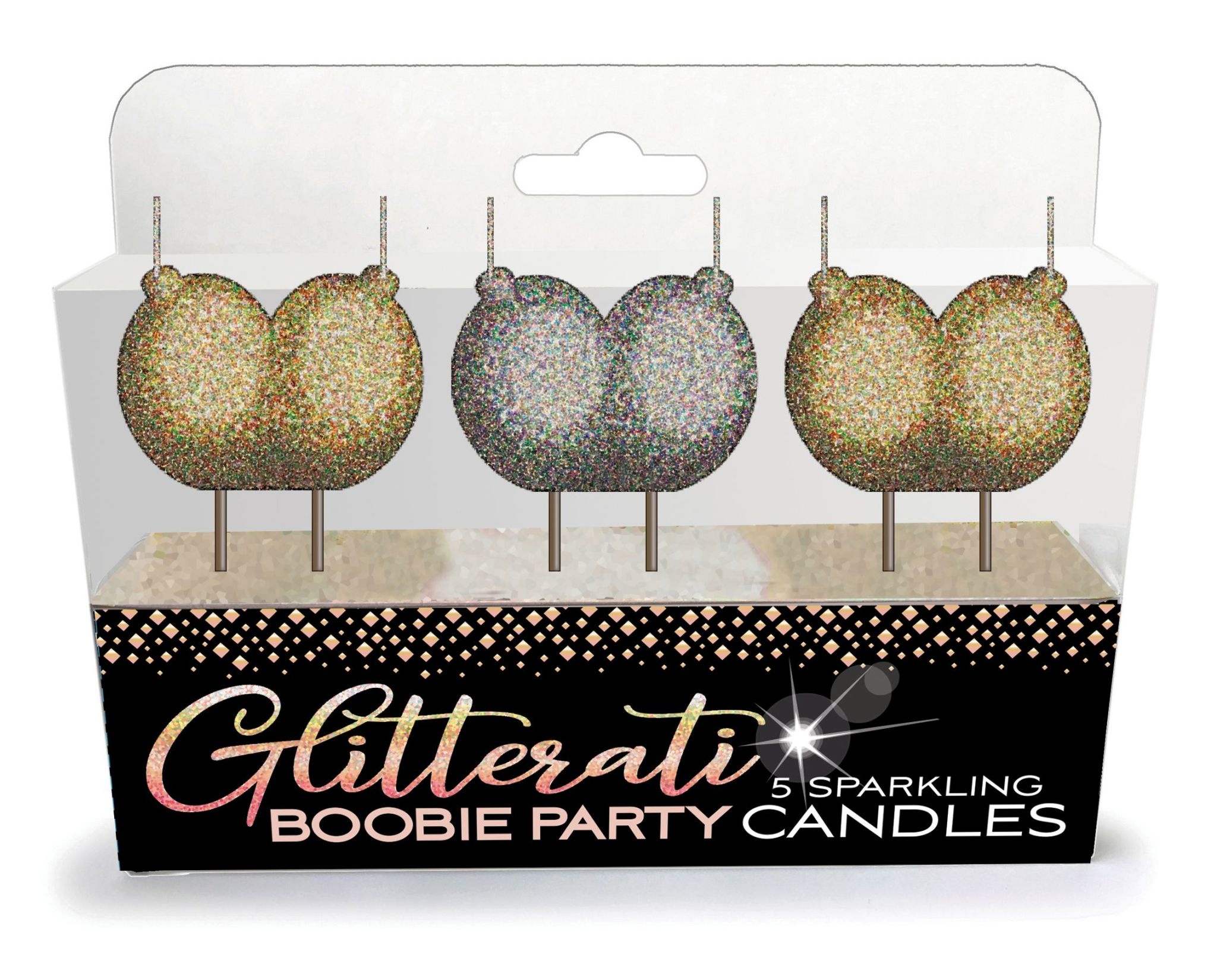 Glitterati Boobie Candle Set contains 3 pairs of gold and silver boobies. These fun and flirty candles are an elegant addition to your next boobie themed party