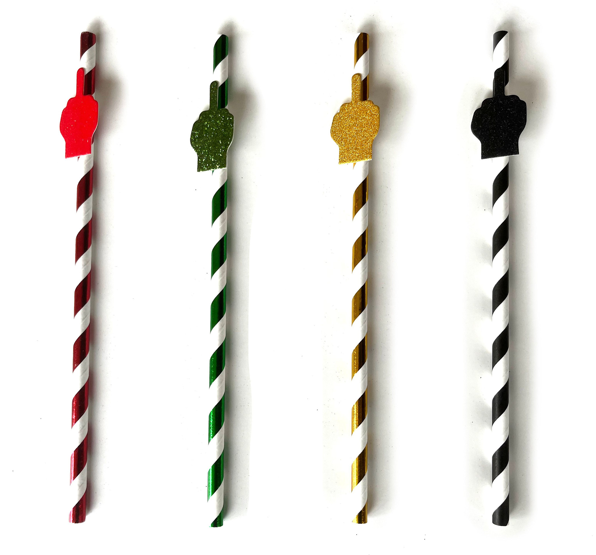 Happy Fucking Birthday Tall Party Straws from Candyprints. Happy Fucking Birthday line of partywares are approved by sassy grandparents and anyone that enjoys a good laugh on their special day! This line of hilarious party products has been regarded by media outlets worldwide as the Official line of adult themed disposable paper products of 2022. This beautifully patterned line of tableware features 8 highes quality paper 8 inches straws with glittering fuck you fingers. Turn your next ordinary party into a fucking high class function with any of our fine paper products. Complete this look with coordinating Happy Fucking Birthday napkins, balloons, candles, games and more! Please note shown in glasses. Glasses not included.