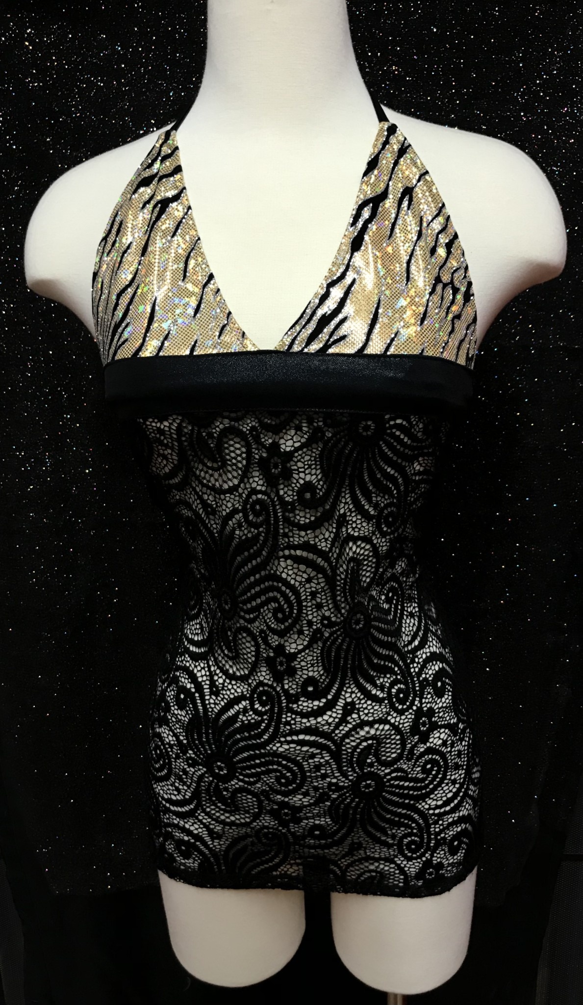 MC TIGER CUT OUT DRESS WITH THONG O/S BLK/GOLD