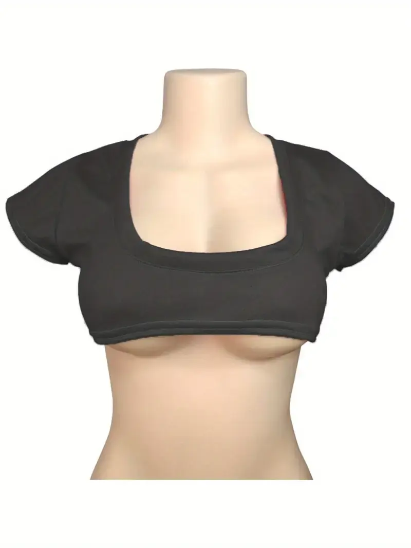 Sexy Low Round Neck Cropped T-Shirt - Ultra-Short Sleeve Cropped Top, Solid Round Neck Crop Top with Smooth Texture, Spring Summer Fall Casual & Formal Outfits, Versatile Everyday to Evening Party Wear,