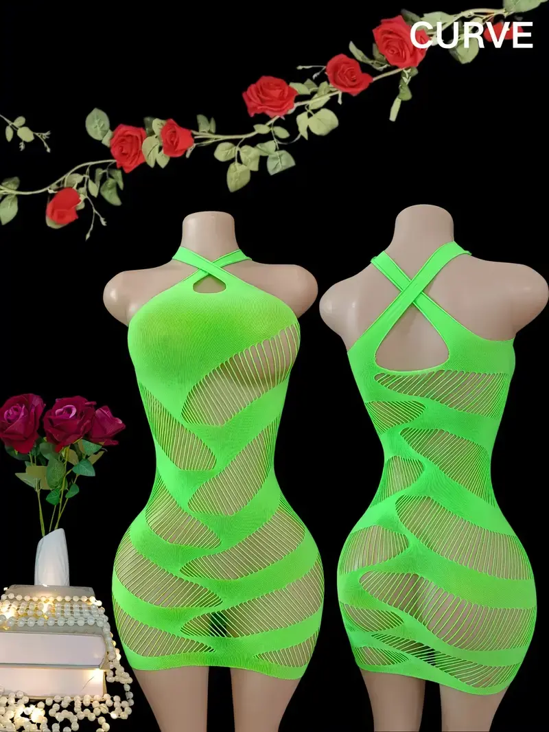 Women's Plus Size Sexy Fishnet Lingerie with Hollow-Out Sheer Stretchy Mesh Camisole