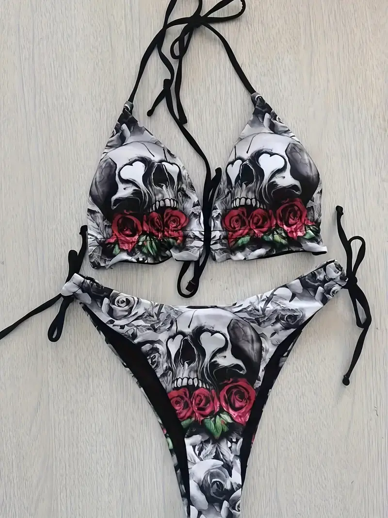 BLK/WHITE SKULL 2 PIECE SIDE TIE BOTTOMS AND TOP