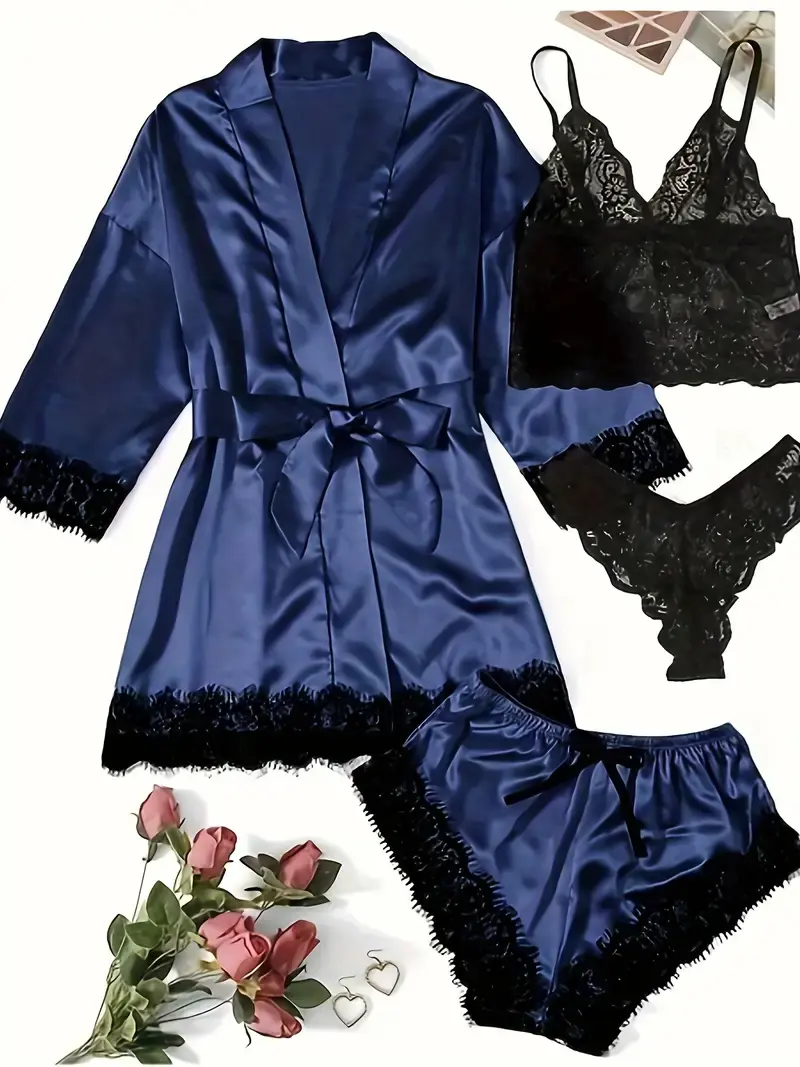 LACE TOP WITH SILK SHORTS AND SILK ROBE