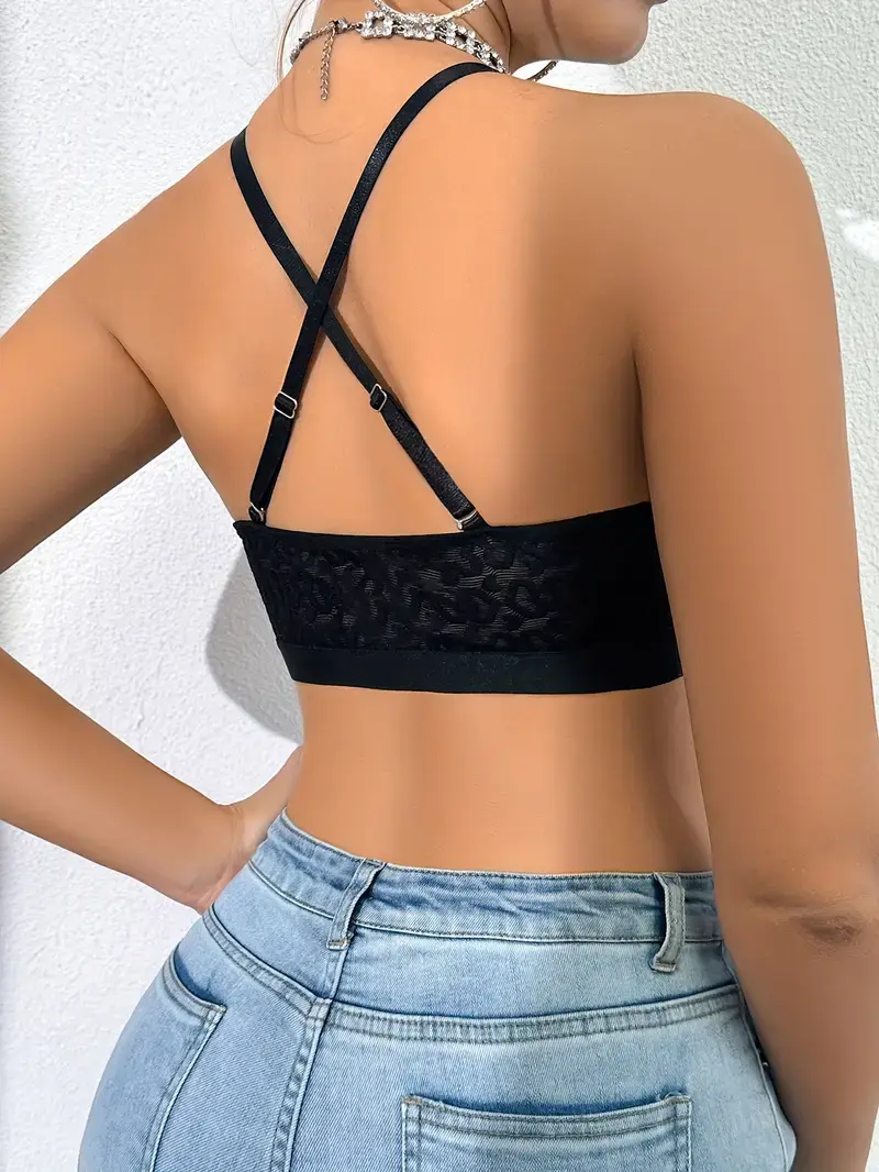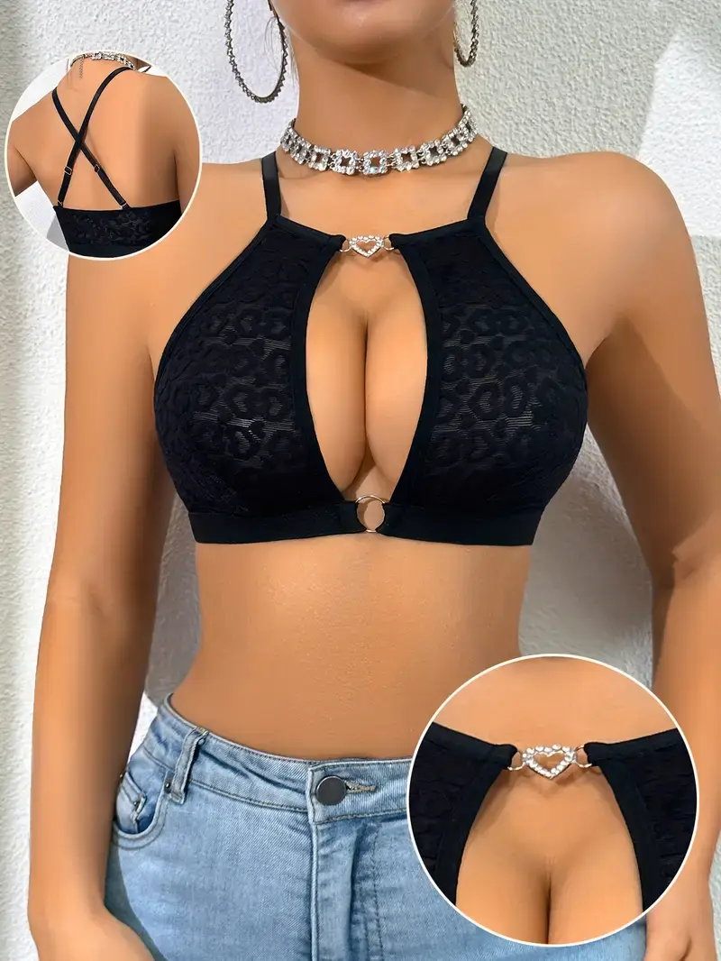 Lace Bra - Black Semi-Sheer Round Cut-Out Design, Adjustable Straps & Comfort Fit for Casual Attire,