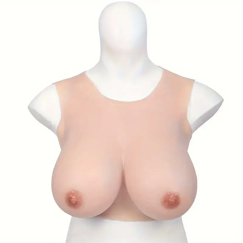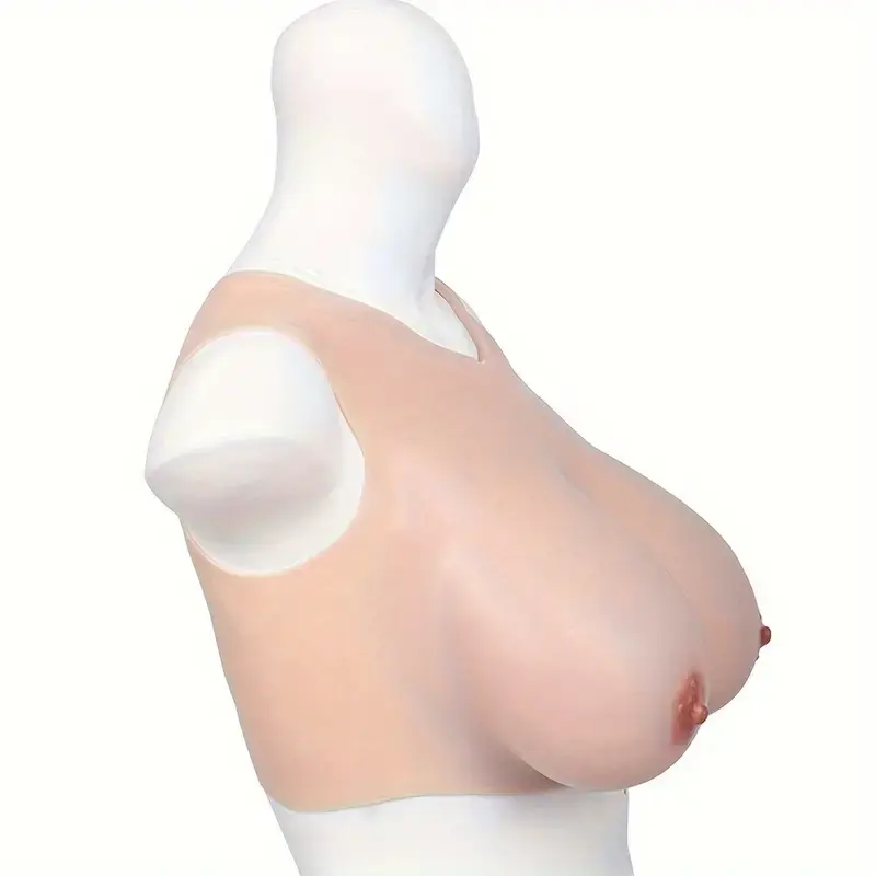 D-Cup Silicone Breast. Made of premium Silicone, they are silky smooth, soft to the touch and also body safe and phthalate free. They have a realistic look and feel to them so you can enjoy every squeeze and caress with perky nipples that have artistic detail on the nipples and areolas that add to the look. They fit over the shoulders and around the chest with a harness like Silicone shirt that the breasts are attached to. This makes for a comfortable and supported pair of breasts! Wear them under clothing and enjoy role playing, couples playing, feminization, costuming and sissification! Slip on this wearable Silicone pair of breasts and you are ready to start accessorizing and dressing up! Whether you want to have a nice pair of breasts for a while that are bigger than your own, or if you have a partner of Dame who is working on feminizing you, these are fun and comfortable to wear! Some may enjoy this pair under their drag queen outfit! Others will dress up as a sissy maid for their Mistress! It can be a fun way to role play and can also cross over into couples play, as well! Perhaps you are going through transition and do not have top surgery. Try this pair and get a feel for a size D! Add bras, lingerie, dresses and more to see what it looks like to have a truly perky pair! Wash with warm water and toy cleaner after each use. Pat dry and store in a cool, dry location, away from direct sunlight and separated from other toys. Measurements: Cup size D