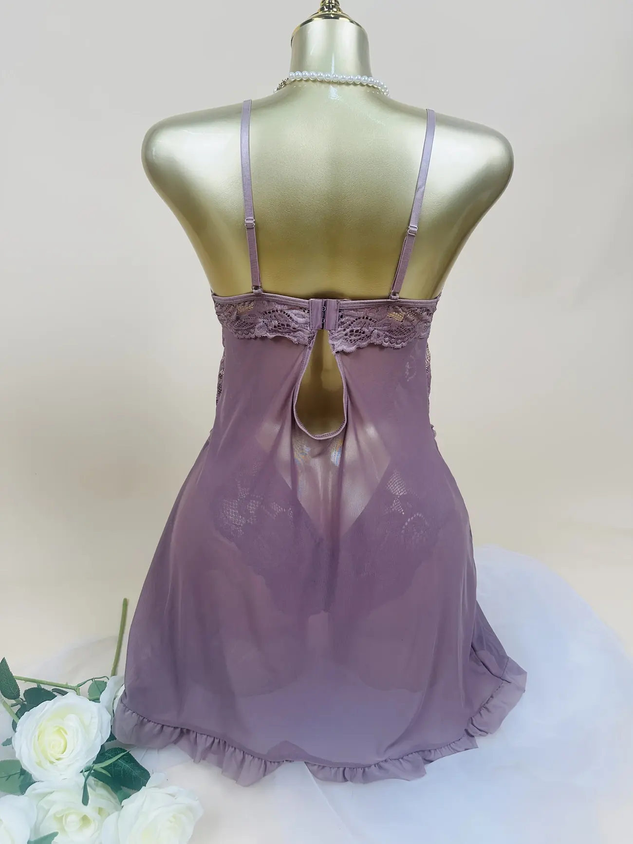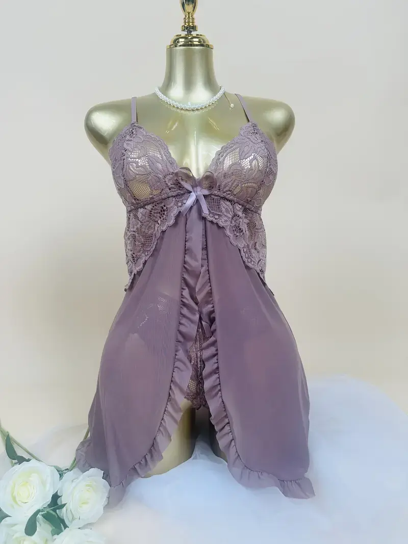 PURPLE LACE SPLIKT FRONT BABYDOLL WITH THONG