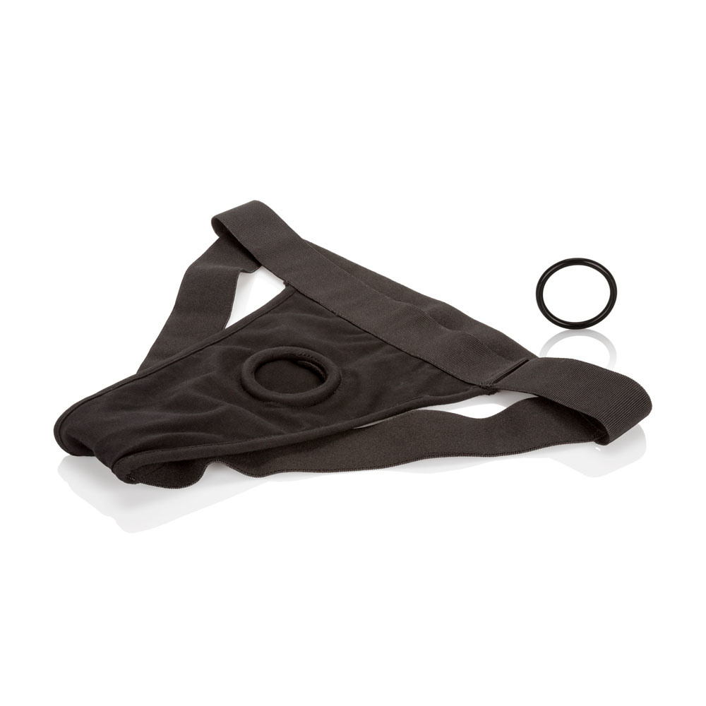 Thoughtfully architected for mutual pleasure. Make more of your intimate moments. A perfect fit is all yours with this stretchy and comfortable delight. As simple to clean as it is easy to use, you'll find cleaning a snap. Water resistant, this device means pure pleasure - never mind a splash or two. Materials: Cotton, Spandex, Polyester and Nylon. M/L. From CalExotics.