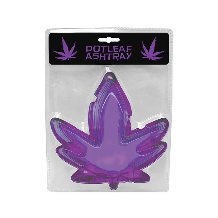 Pink Potleaf Ashtray. Hey babe! Show off your style with this vibrantly-colored pink potleaf shaped ashtray. Style meets function as you hang out with your friends AND your buds. Includes: a 5-inch-wide glass potleaf-shaped ashtray.