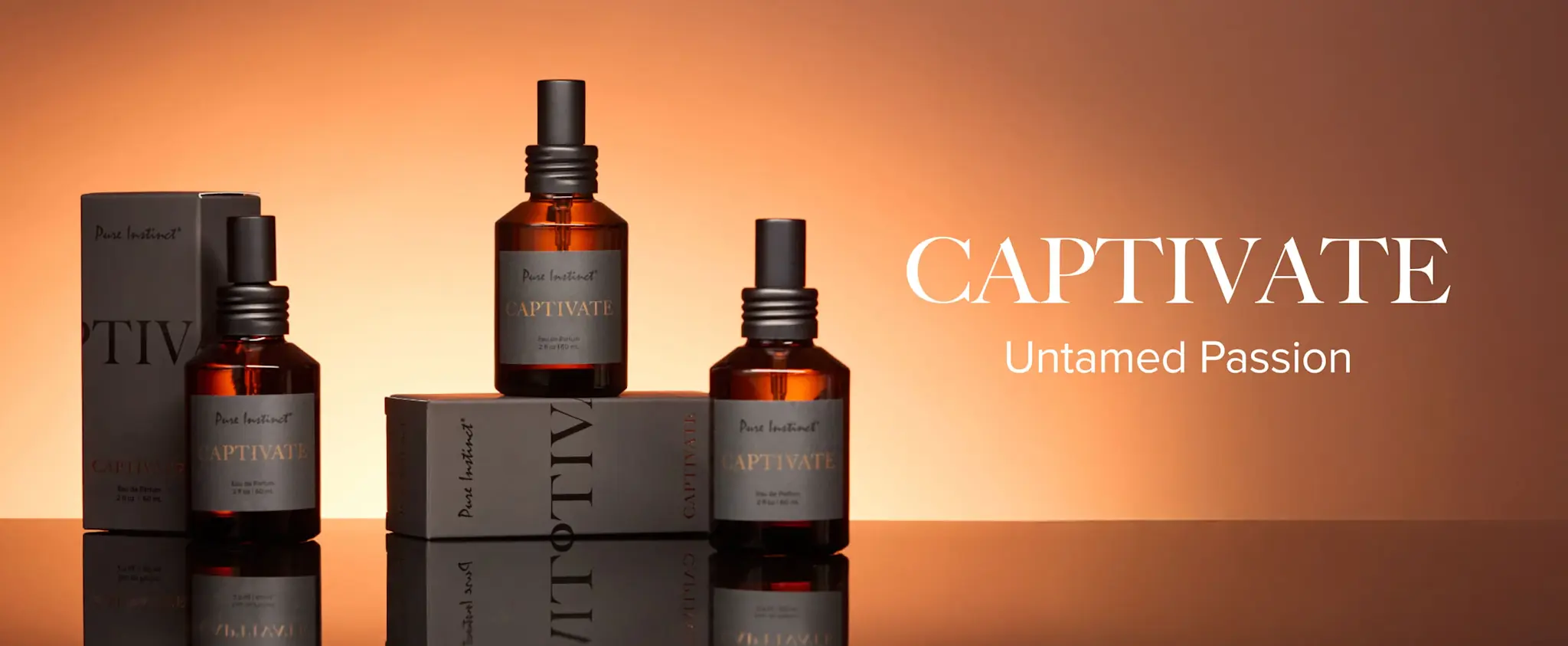 CAPTIVATE - Untamed Passion. A bright and soulful fragrance that awakens the senses. The nuanced, delicate sweetness of desert fruits give way to solar florals and wild rose, while settling into an unexpected but inviting base of salted vanilla and sun-warmed notes of driftwood.
