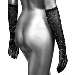 Radiance Full Length Gloves Black from California Exotic Novelties. Be you, be bold, but most of all, be a show stopper in the daring Radiance Full Length Gloves. The dazzling Full Length Gloves wrap you in soft, stretchy Mesh and Sparkling Rhinestones from fingertip to elbow. The soft, breathable Mesh keeps you comfortable, while the dazzling Rhinestones give your look a glow up. Dress them up or dress them down, these fierce Full Length Gloves are the perfect accessory for lingerie pieces, fiery festival looks, hot Halloween costumes or flirty formal looks. One size fits most standard sizes. Hand wash only and lay flat to dry. Specifications: SKU SE300035. Color Black. 1 Year Warranty. Material type Soft Mesh. Nylon, Spandex Gloves, 100% Glass Rhinestone