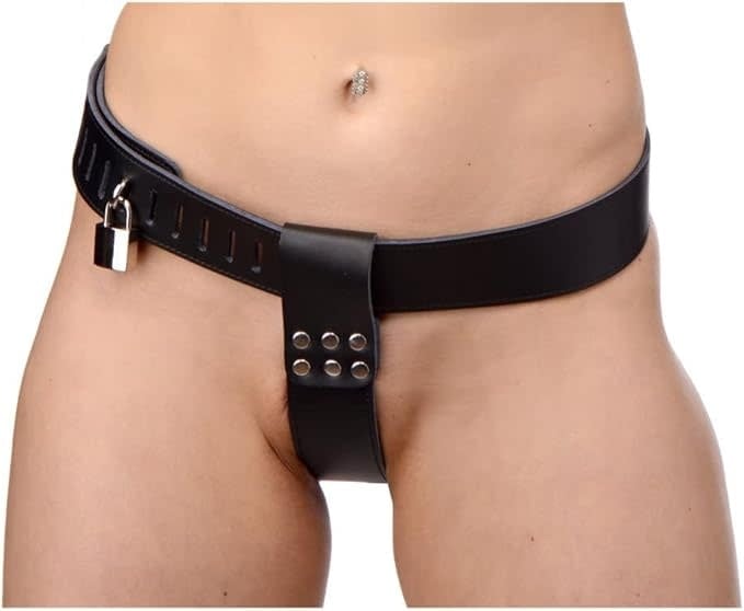 This PU leather chastity belt lets you enjoy pleasure control with a lower price point. Using all man-made materials, this two strap system has many points of adjustability for a secure fit on many different body types. One strap secures around the hips, while the other runs up between the legs. Using the two small padlocks, you can strap your partner in tight, denying them access to satisfaction and unable to escape. Sitting low on the hips and with a sleek profile, this devious device can be worn out under clothes for an added element of excitement.