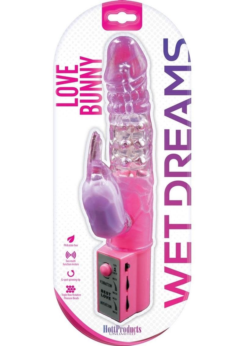 Hippity Hop to the Pleasure Shop!... with LOVE BUNNY pleasure rabbit. This cute little bunny may look cute and cuddly but don't be taken in with his cute charm. Love Bunny has a ferocious appetite for pleasure and will have you hopping & flopping into orgasmic overdrive with his super powerful clitoral stimulation ears and powerful, thrusting, and rotating penetration shaft. Multi rows of stimulating pleasure beads and independent controls for each function let you tickle and play the Bunny way... and will have you doing the orgasmic Bunny hop!